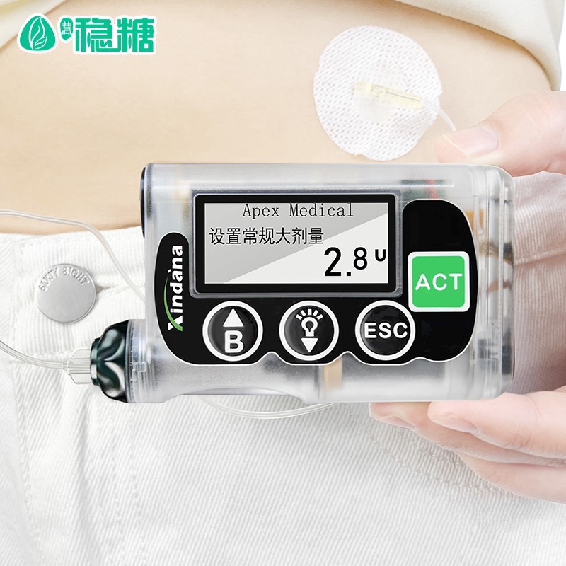 胰島素泵是一種模擬人體胰腺功能的設(shè)備,是根據(jù)人體對(duì)胰島素的基本需求,全天24小時(shí)向人體內(nèi)注射胰島素的裝置。一次裝藥可以使用三到七天,減輕了糖尿病患者因針刺引起的疼痛和不適。它的使用非常方便,只要戴在身上就可以,不影響正常生活和運(yùn)動(dòng)。