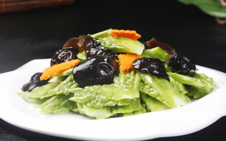 苦瓜是藥食同源的蔬菜,具有清熱解毒、清心明目、潤脾補(bǔ)腎的功效,尤其適合夏天食用;黑木耳富含蛋白質(zhì)、鐵、鈣、磷、維生素等營養(yǎng)元素,可以潤腸解毒,養(yǎng)顏活血。